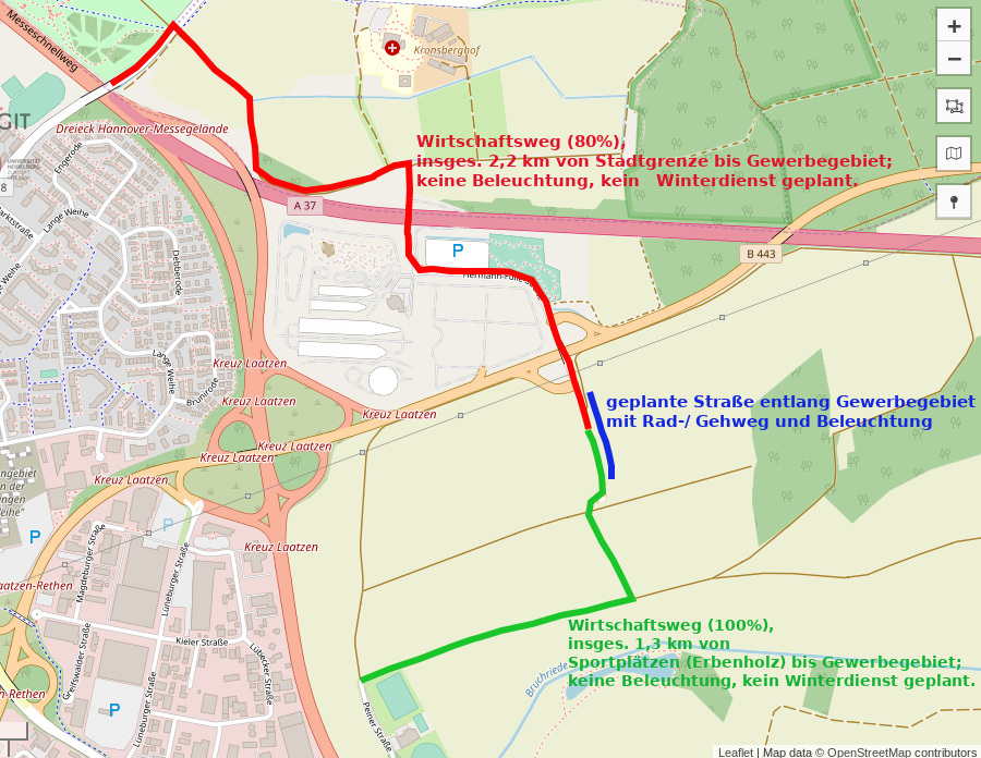 Nach Informationen der Stadt Laatzen wird im Bereich östlich der B6 und südlich der B443 ein