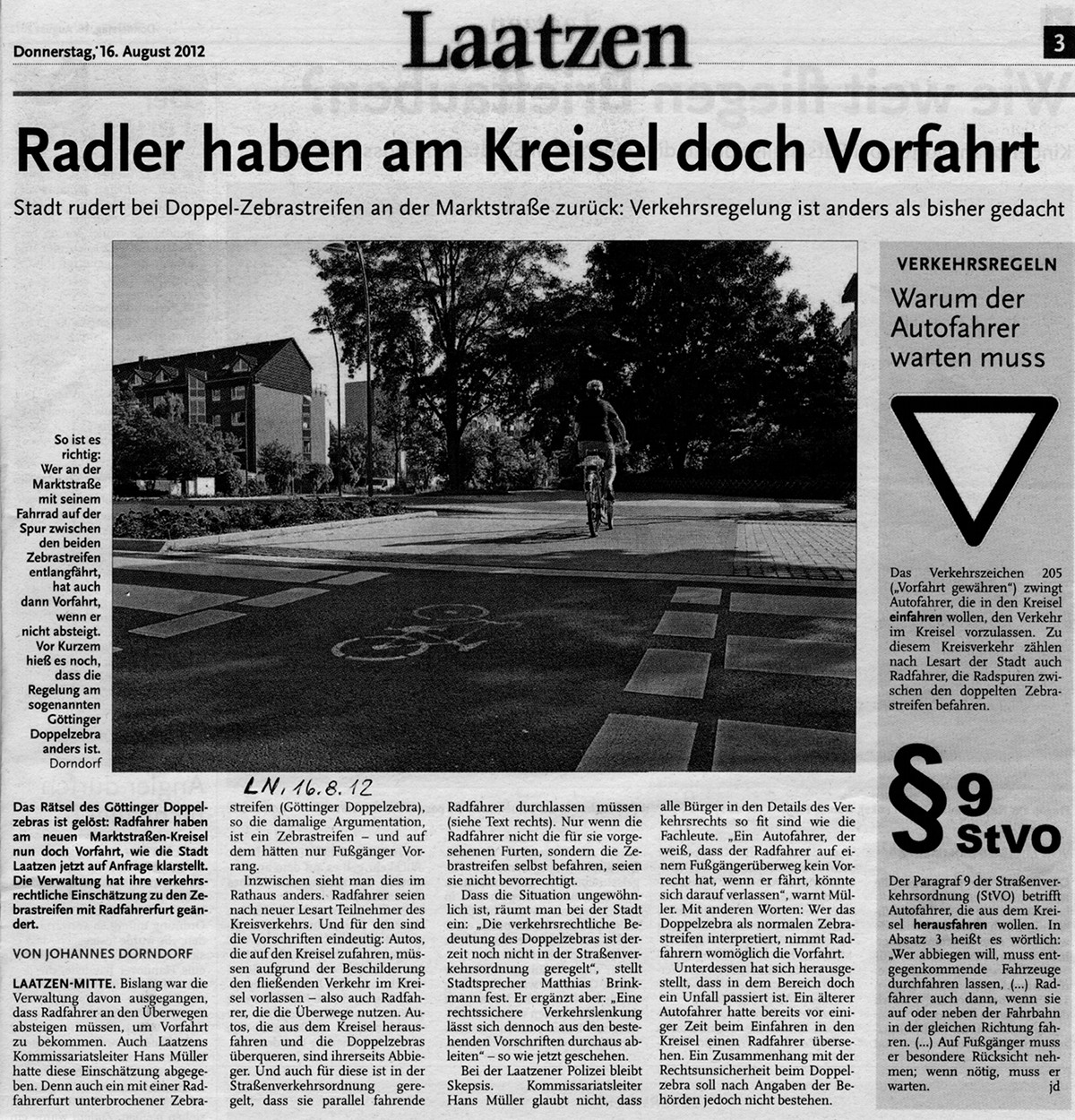 Stadtverwaltung Laatzen lässt sich beraten und erkennt die Verkehrsregeln an!