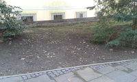 herabgefallenen Ästen. Ein Bügel davon steht unerreichbar hinter dem Bauzaun (siehe die
