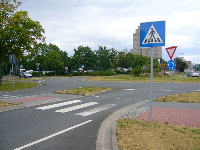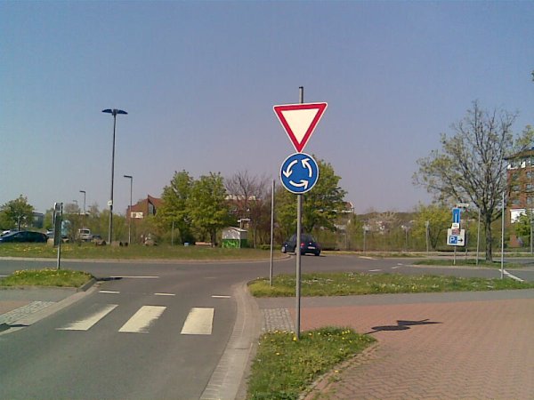 Position der "Vorfahrt achten"-Schilder am Kreisverkehr